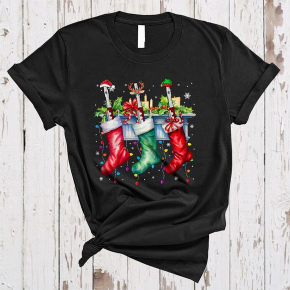 Three Santa Reindeer ELF Bassoon In Christmas Socks, Colorful X-mas Music, Family Group T-Shirt
