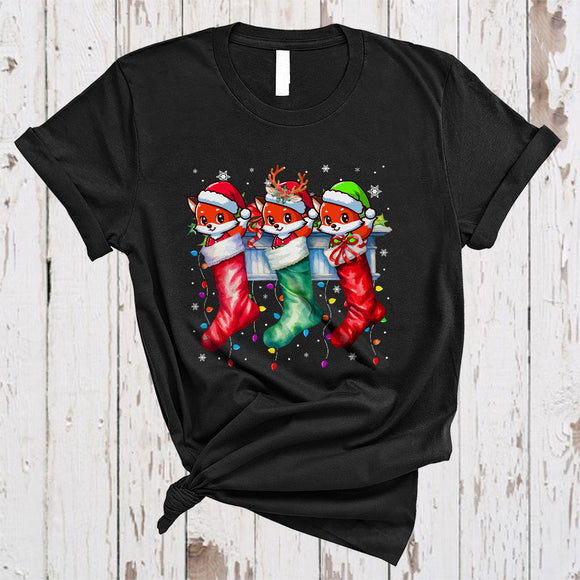 Three Santa Reindeer ELF Fox In Christmas Socks, Colorful X-mas Animal, Family Group T-Shirt