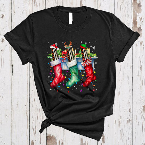 Three Santa Reindeer ELF Flute In Christmas Socks, Colorful X-mas Music, Family Group T-Shirt