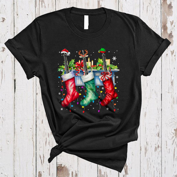 Three Santa Reindeer ELF Guitar In Christmas Socks, Colorful X-mas Music, Family Group T-Shirt