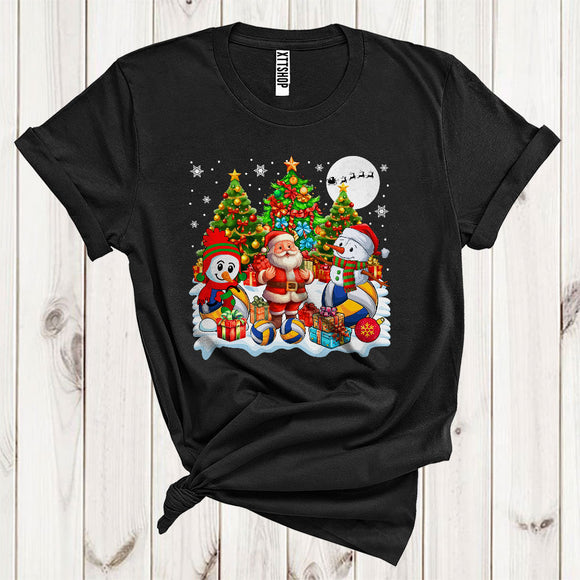 Santa With Snowman Volleyball Xmas Tree Cute Christmas Snow Sport Player Matching Team T-Shirt