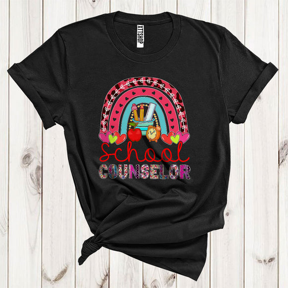 School Counselor Cool Happy Valentine's Day Rainbow Heart Plaid Matching Career Job Group T-Shirt