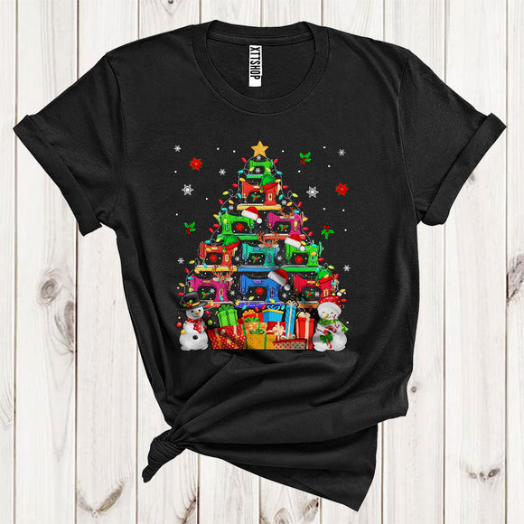 Sewing Machines Christmas Tree Lights Funny Santa ELF Reindeer Sewing Lover Tailor Team T-Shirt