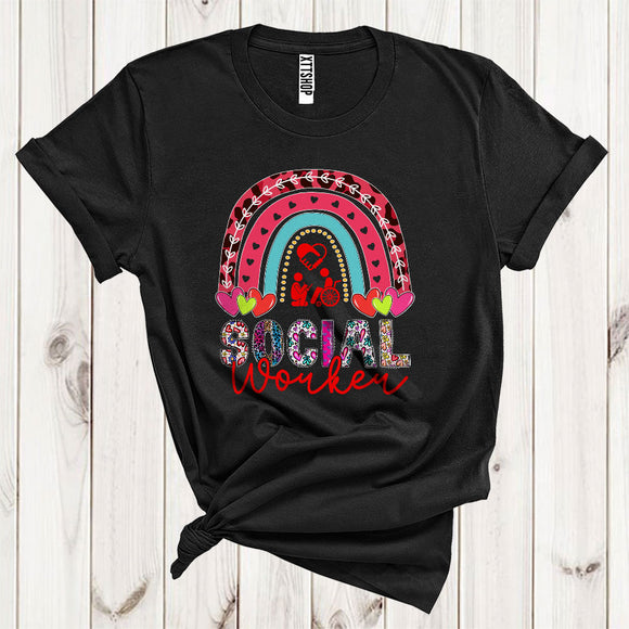 Social Worker Cool Happy Valentine's Day Rainbow Heart Plaid Matching Career Job Group T-Shirt
