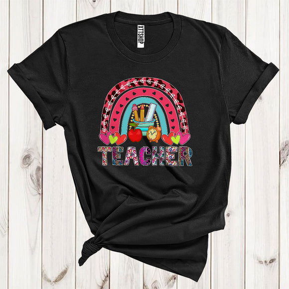 Teacher Cool Happy Valentine's Day Rainbow Heart Plaid Matching Career Job Group T-Shirt