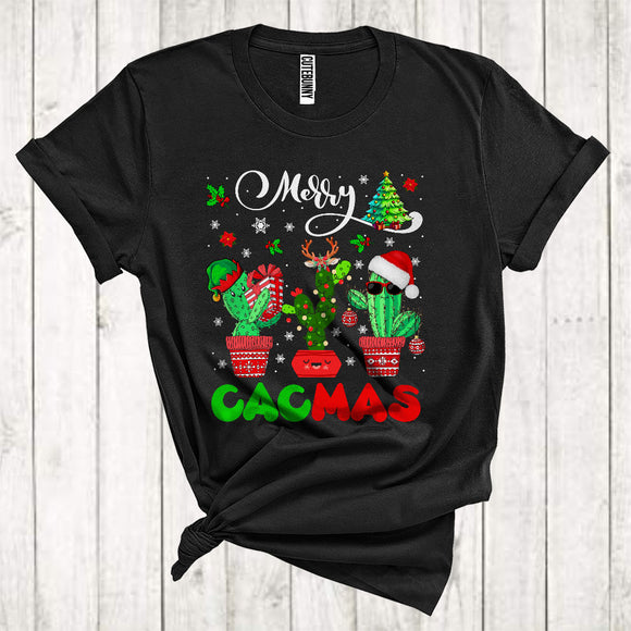Merry Cacmas Cute Christmas Snow Plaid Santa Reindeer ELF Cactus Lover T-Shirt