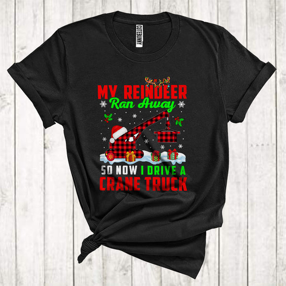My Reindeer Ran Away So Now I Drive A Crane Truck Cute Christmas Snow Red Plaid Santa Truck T-Shirt