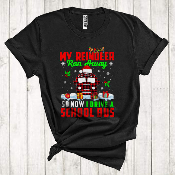 My Reindeer Ran Away So Now I Drive A School Bus Cute Christmas Snow Red Plaid Santa Car T-Shirt