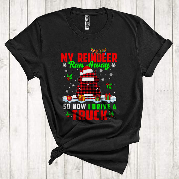 My Reindeer Ran Away So Now I Drive A Truck Cute Christmas Snow Red Plaid Santa Truck Driver T-Shirt