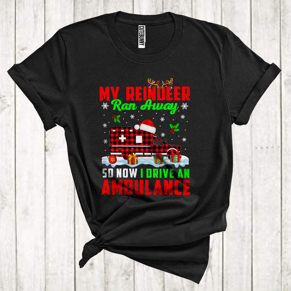 My Reindeer Ran Away So Now I Drive An Ambulance Cute Christmas Snow Red Plaid Santa Car T-Shirt