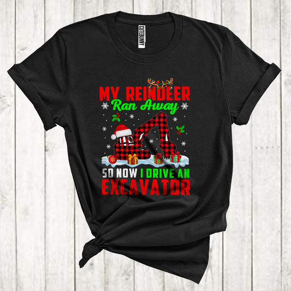 My Reindeer Ran Away So Now I Drive An Excavator Cute Christmas Snow Red Plaid Santa Truck T-Shirt