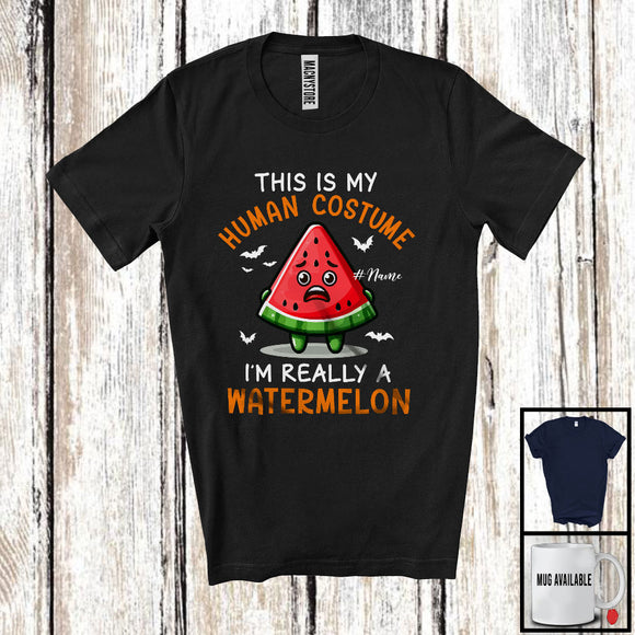 Personalized My Human Costume Watermelon; Joyful Halloween Custom Name Fruit; Vegan T-Shirt