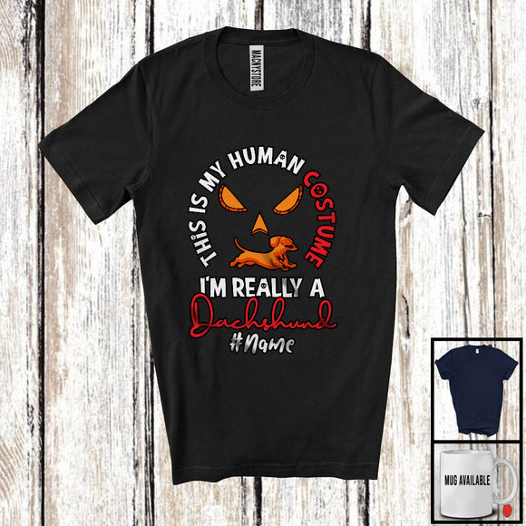 Personalized This Is My Human Costume Dachshund; Creepy Halloween Custom Name Pumpkin Face T-Shirt