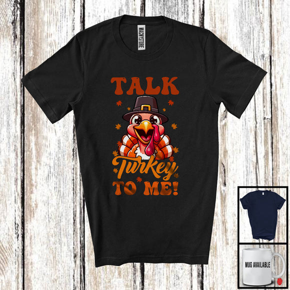 Talk Turkey To Me; Humorous Thanksgiving Lovely Turkey Face; Autumn Leaf Family Group T-Shirt
