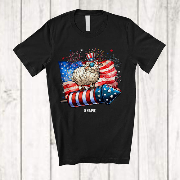 Personalized Custom Name Patriotic Floral Pig; Proud 4th of July Red Blue White Pig Farmer T-Shirt