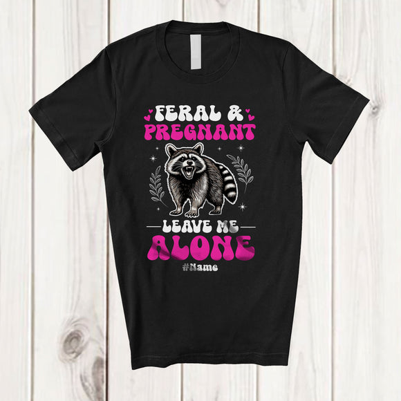 Personalized Feral and Pregnant Leave Me Alone; Lovely Pregnancy Custom Name Raccoon T-Shirt