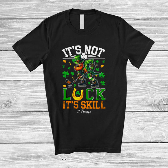 Personalized It's Not Luck It's Skill; Joyful St. Patrick's Day Custom Name Hockey Player Leprechaun T-Shirt