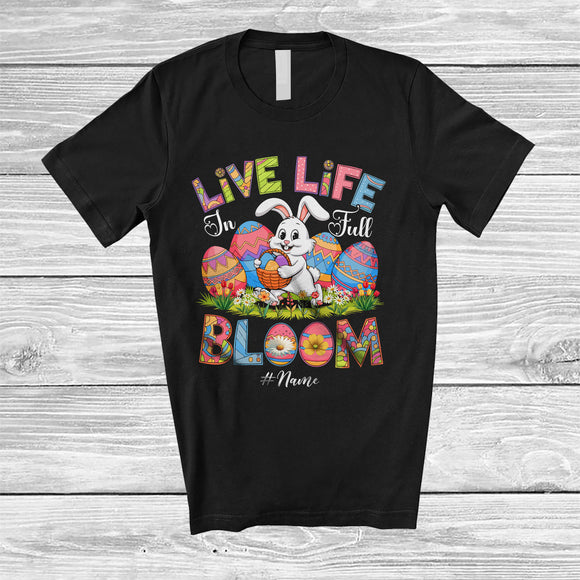 Personalized Live Life In Full Bloom; Adorable Easter Custom Name Bunny Hunting Eggs; Family T-Shirt