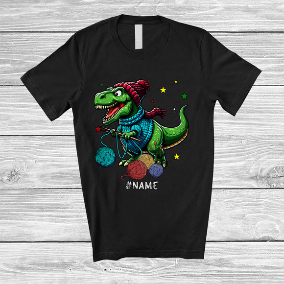 Personalized T-Rex Knitting; Awesome Birthday Knitting Animal; Custom Name Boys Girls Family T-Shirt