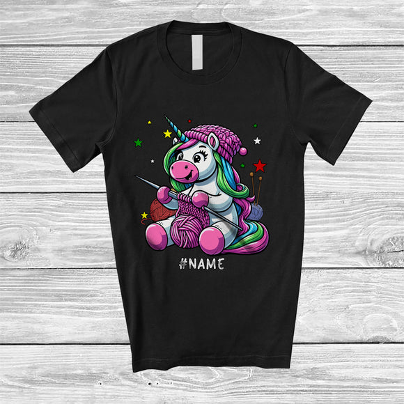 Personalized Unicorn Knitting; Awesome Birthday Knitting Animal; Custom Name Boys Girls Family T-Shirt