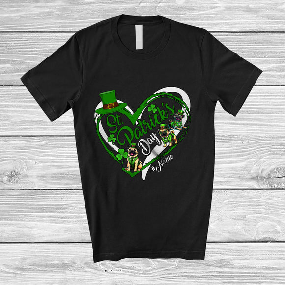 Personalized St. Patrick's Day; Lovely Custom Name Leprechaun Pug Heart Shape; Shamrock T-Shirt