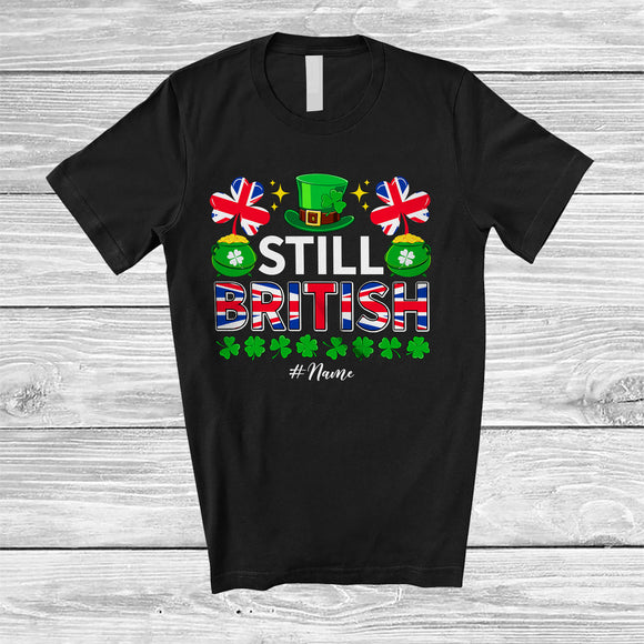 Personalized Still British; Lovely St. Patrick's Day Custom Name Leprechaun British Flag; Family T-Shirt