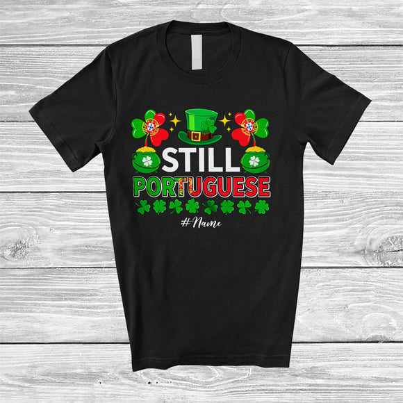 Personalized Still Portuguese; Lovely St. Patrick's Day Custom Name Leprechaun Portugal Flag; Family T-Shirt