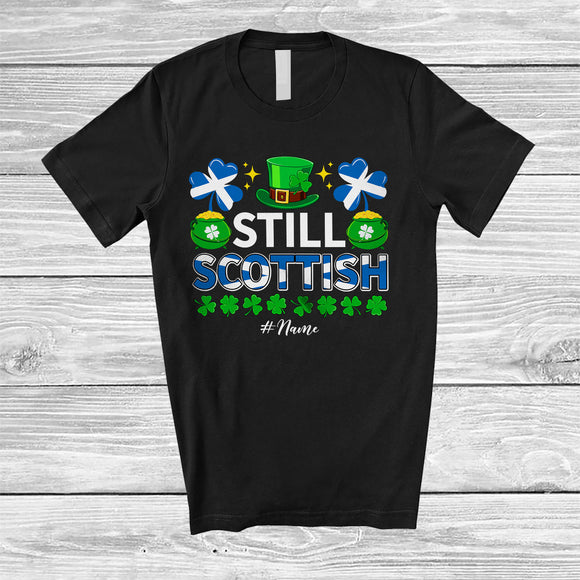 Personalized Still Scottish; Lovely St. Patrick's Day Custom Name Leprechaun Scottish Flag; Family T-Shirt