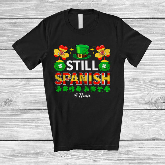 Personalized Still Spanish; Lovely St. Patrick's Day Custom Name Leprechaun Spanish Flag; Family T-Shirt