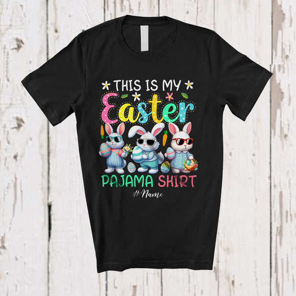Personalized This Is My Easter Pajama Shirt; Adorable Custom Name Three Bunnies Egg Hunting T-Shirt