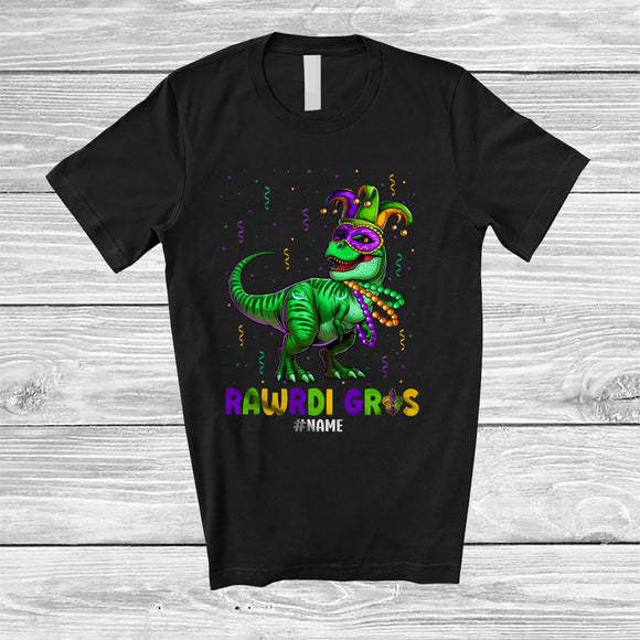 Personalized Rawrdi Gras; Humorous Mardi Gras Mask Beads T-Rex Dinosaur; Custom Name Parades T-Shirt