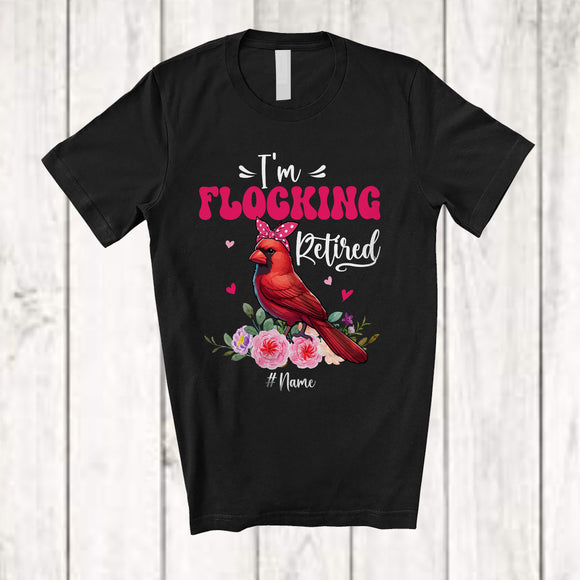 Personalized I'm Flocking Retired; Adorable Custom Name Cardinal Bird Flock Retirement; Flowers T-Shirt
