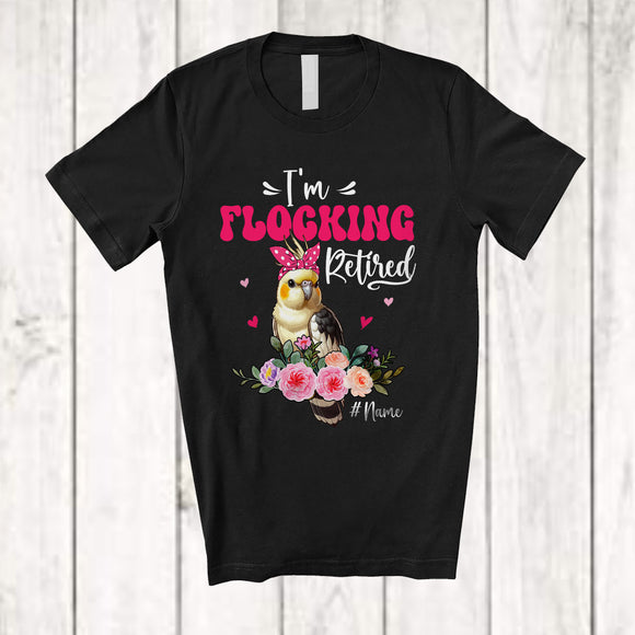 Personalized I'm Flocking Retired; Adorable Custom Name Cockatiel Bird Flock Retirement; Flowers T-Shirt