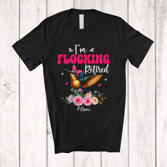 Personalized I'm Flocking Retired; Adorable Custom Name Hummingbird Bird Flock Retirement; Flowers T-Shirt