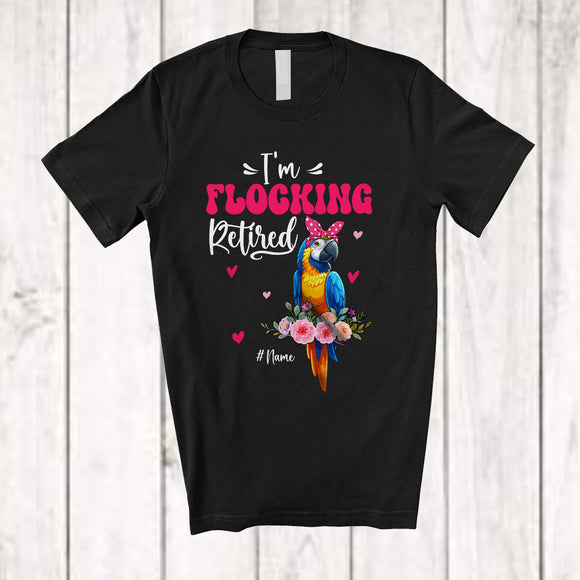 Personalized I'm Flocking Retired; Adorable Custom Name Macaw Bird Flock Retirement; Flowers T-Shirt