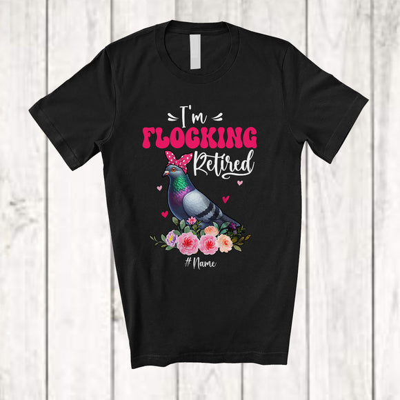 Personalized I'm Flocking Retired; Adorable Custom Name Pigeon Bird Flock Retirement; Flowers T-Shirt