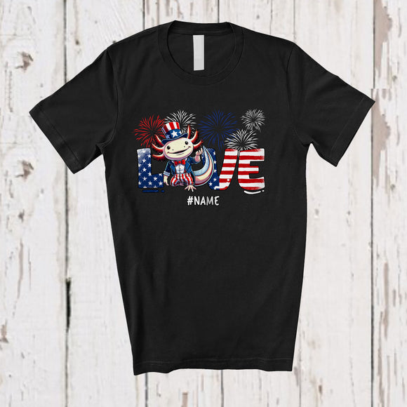 Personalized Love; Adorable 4th Of July USA Flag Custom Name Axolotl Lover; Family Group T-Shirt
