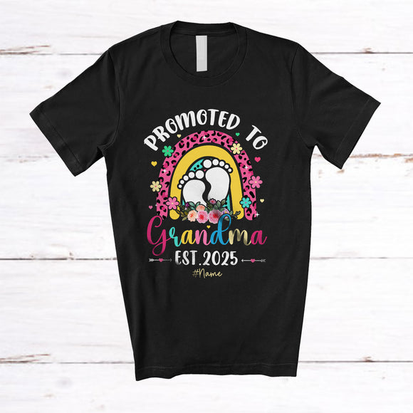 Personalized Promoted To Grandma Est 2025; Lovely Pregnancy Leopard Rainbow; Custom Name Family T-Shirt