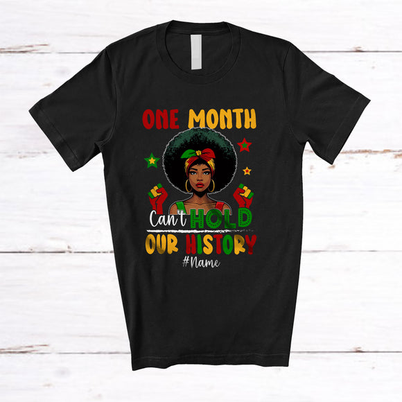Personalized One Month Can't Hold Our Story; Proud Black History Juneteenth Custom Name Women Afro T-Shirt