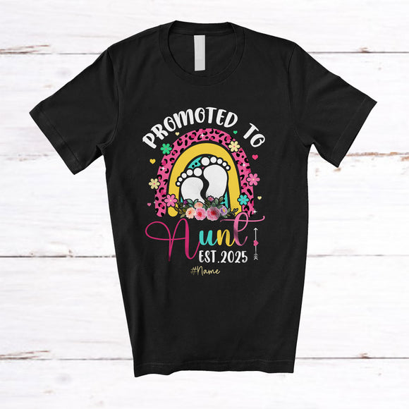 Personalized Promoted To Aunt Est 2025; Lovely Pregnancy Leopard Rainbow; Custom Name Family T-Shirt