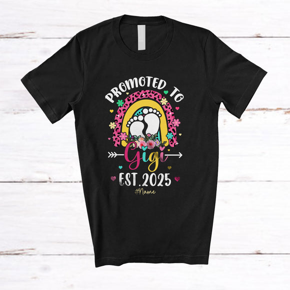Personalized Promoted To Gigi Est 2025; Lovely Pregnancy Leopard Rainbow; Custom Name Family T-Shirt