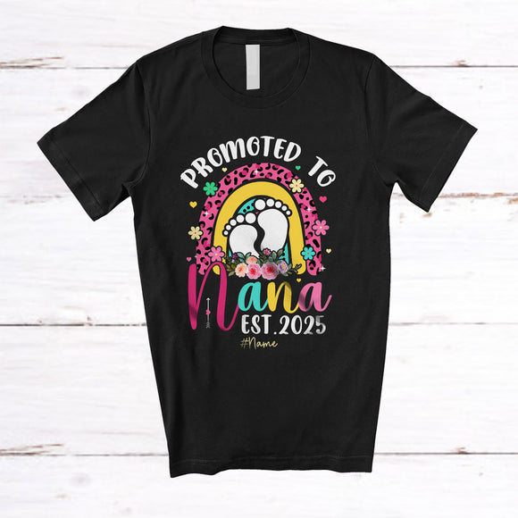 Personalized Promoted To Nana Est 2025; Lovely Pregnancy Leopard Rainbow; Custom Name Family T-Shirt