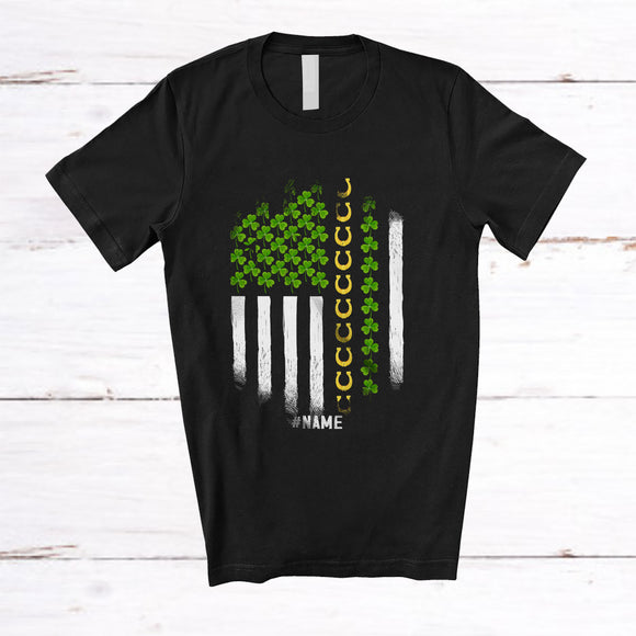 Personalized US Shamrock Flag; Humorous St. Patrick's Day Shamrocks; Custom Name Family T-Shirt