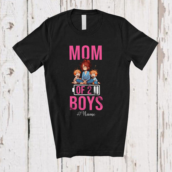 Personalized Mom Of 2 Boys; Humorous Mother's Day Out of Battery Mom; Custom Name Family T-Shirt