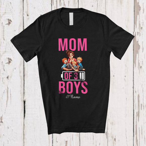 Personalized Mom Of 3 Boys; Humorous Mother's Day Out of Battery Mom; Custom Name Family T-Shirt