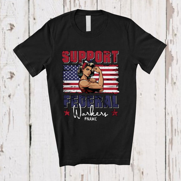 Personalized Support Federal Workers; Amazing Custom Name Strong Women US Flag; Patriotic T-Shirt