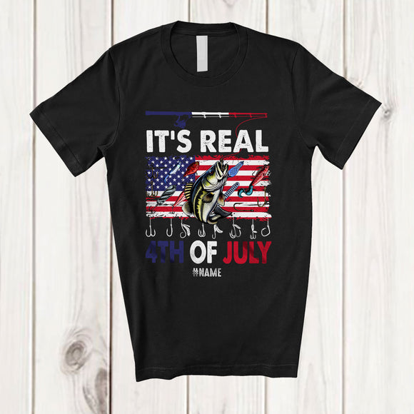 Personalized It's Real 4th of July; Joyful Custom Name Player Fishing Tools; US Flag Patriotic T-Shirt