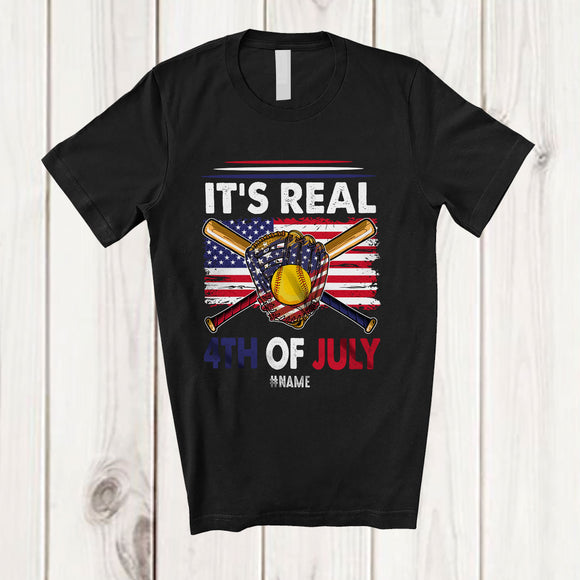Personalized It's Real 4th of July; Joyful Custom Name Player Baseball Tools; US Flag Patriotic T-Shirt