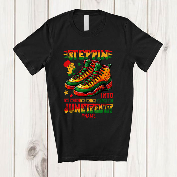 Personalized Steppin into Juneteenth; Amusing Custom Name Black Afro Shoes Running; African T-Shirt