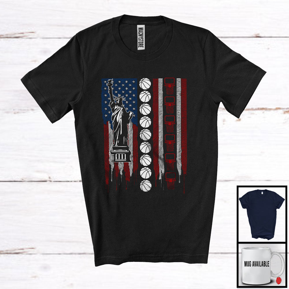 American Flag Basketball, Amazing 4th Of July Patriotic Group, Sport Player Playing Team T-Shirt